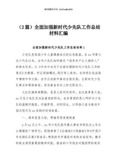 / 【七哥公文】2025年:(2篇)全面加强新时代少先队工作总结材料汇编+更多免费公文+VX:QiGeGongWen2024