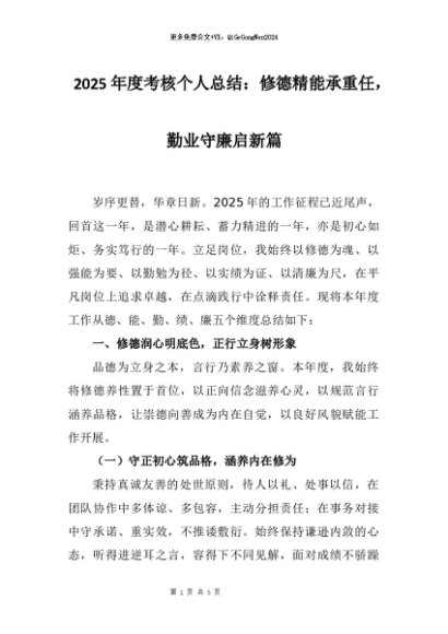 【七哥公文】2025年:2025年度考核个人总结:修德精能承重任,勤业守廉启新篇(1)+更多免费公文+VX:QiGeGongWen2024
