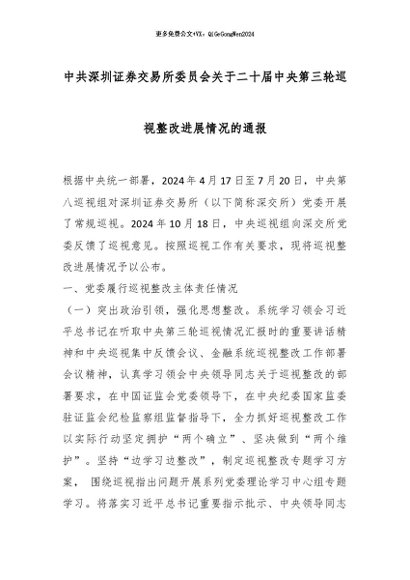 【七哥公文】2025年:中共深圳证券交易所委员会关于二十届中央第三轮巡视整改进展情况的通报_副本+更多免费公文+VX:QiGeGongWen2024