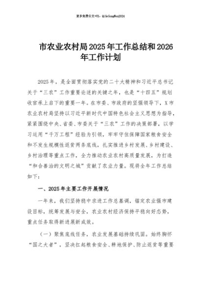 / 【七哥公文】2025年:市农业农村局2025年工作总结和2026年工作计划+更多免费公文+VX:QiGeGongWen2024