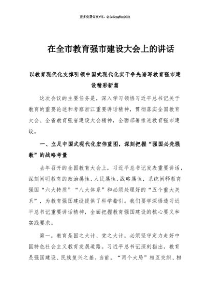 / 【七哥公文】2025年:在全市教育强市建设大会上的讲话+更多免费公文+VX:QiGeGongWen2024