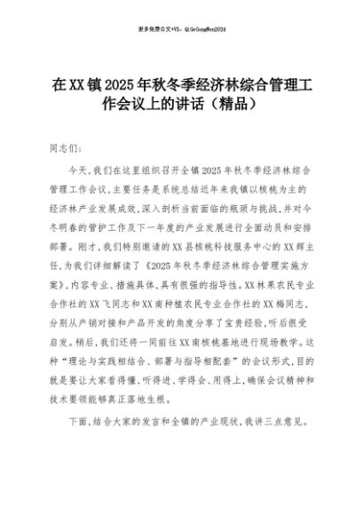 【七哥公文】2025年:在XX镇2025年秋冬季经济林综合管理工作会议上的讲话(精品)+更多免费公文+VX:QiGeGongWen2024