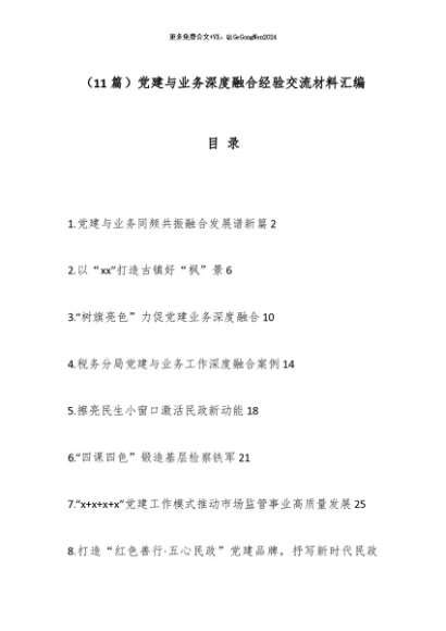 / 【七哥公文】2025年:(11篇)党建与业务深度融合经验交流材料汇编+更多免费公文+VX:QiGeGongWen2024