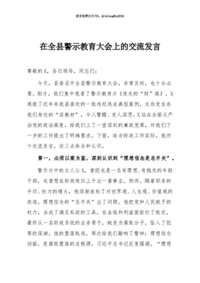 / 【七哥公文】2025年:在全县警示教育大会上的交流发言+更多免费公文+VX:QiGeGongWen2024