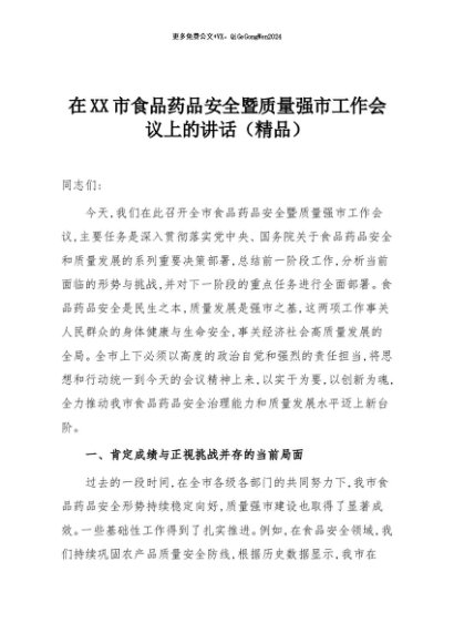 【七哥公文】2025年:在XX市食品药品安全暨质量强市工作会议上的讲话(精品)+更多免费公文+VX:QiGeGongWen2024