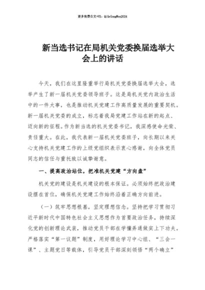 / 【七哥公文】2025年:新当选书记在局机关党委换届选举大会上的讲话+更多免费公文+VX:QiGeGongWen2024