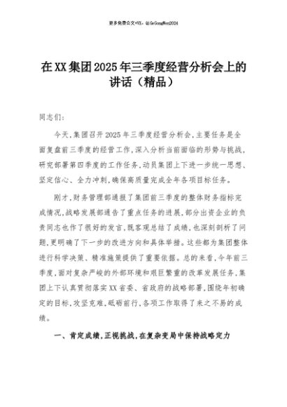 【七哥公文】2025年:在XX集团2025年三季度经营分析会上的讲话(精品)+更多免费公文+VX:QiGeGongWen2024