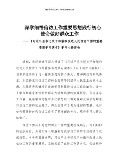 / 【七哥公文】2025年:深学细悟信访工作重要思想践行初心使命做好群众工作+更多免费公文+VX:QiGeGongWen2024