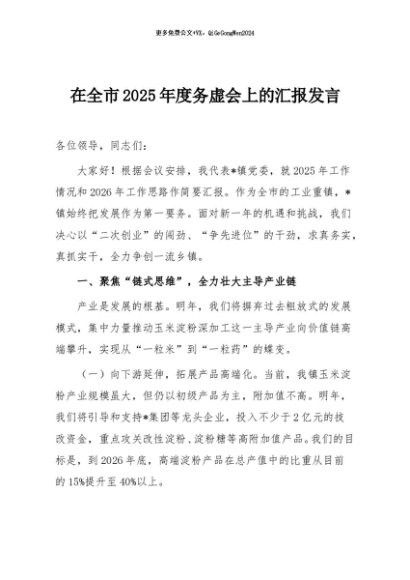 / 【七哥公文】2025年:在全市2025年度务虚会上的汇报发言+更多免费公文+VX:QiGeGongWen2024
