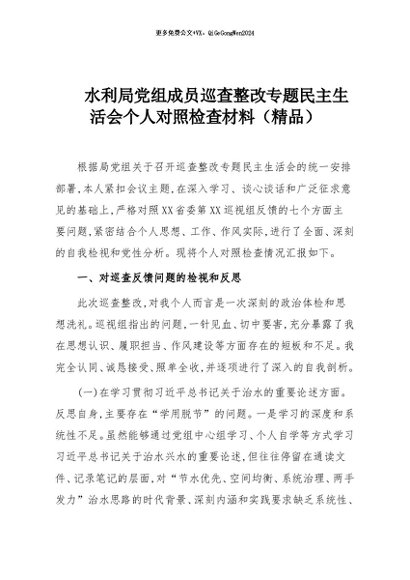 【七哥公文】2025年:水利局党组成员巡查整改专题民主生活会个人对照检查材料(精品)+更多免费公文+VX:QiGeGongWen2024