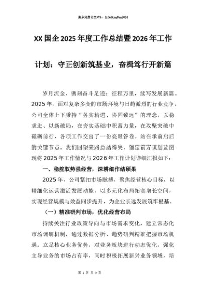 【七哥公文】2025年:XX国企2025年度工作总结暨2026年工作计划:守正创新筑基业,奋楫笃行开新篇+更多免费公文+VX:QiGeGongWen2024