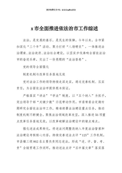 【七哥公文】2025年:x市全面推进依法治市工作综述+更多免费公文+VX:QiGeGongWen2024