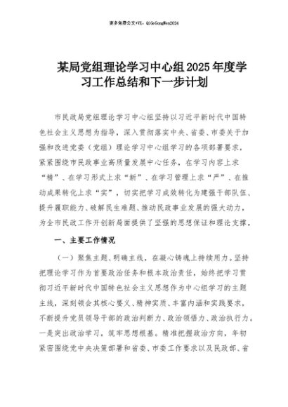 【七哥公文】2025年:某局党组理论学习中心组2025年度学习工作总结和下一步计划+更多免费公文+VX:QiGeGongWen2024