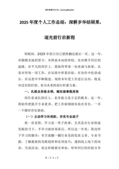 【七哥公文】2025年:2025年度个人工作总结:深耕岁华结硕果,逐光前行启新程+更多免费公文+VX:QiGeGongWen2024