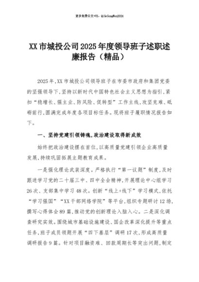 【七哥公文】2025年:XX市城投公司2025年度领导班子述职述廉报告(精品)+更多免费公文+VX:QiGeGongWen2024