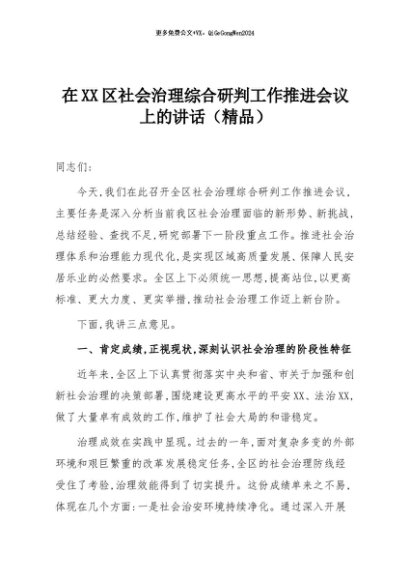 【七哥公文】2025年:在XX区社会治理综合研判工作推进会议上的讲话(精品)+更多免费公文+VX:QiGeGongWen2024