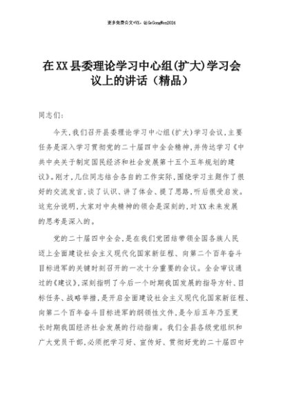【七哥公文】2025年:在XX县委理论学习中心组(扩大)学习会议上的讲话(精品)+更多免费公文+VX:QiGeGongWen2024