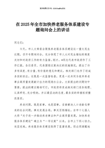 【七哥公文】2025年:在2025年全市加快养老服务体系建设专题询问会上的讲话+更多免费公文+VX:QiGeGongWen2024