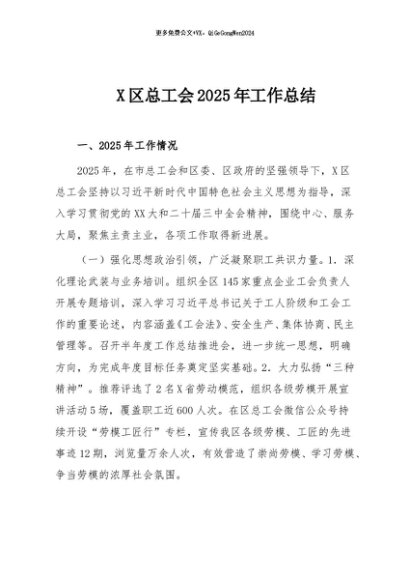 / 【七哥公文】2025年:X区总工会2025年工作总结+更多免费公文+VX:QiGeGongWen2024