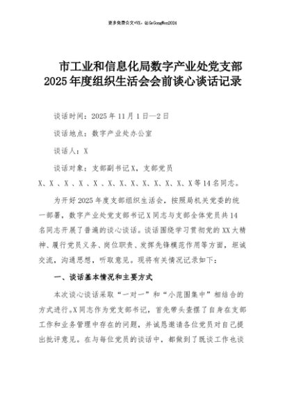 【七哥公文】2025年:市工业和信息化局数字产业处党支部2025年度组织生活会会前谈心谈话记录+更多免费公文+VX:QiGeGongWen2024