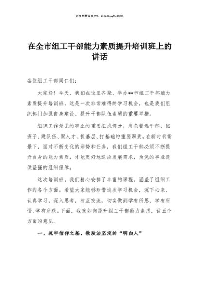 / 【七哥公文】2025年:在全市组工干部能力素质提升培训班上的讲话+更多免费公文+VX:QiGeGongWen2024