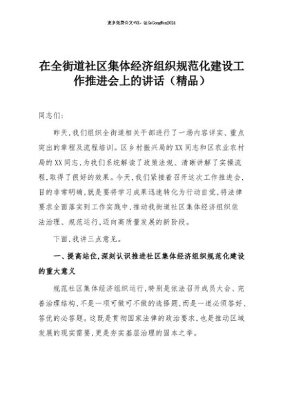 【七哥公文】2025年:在全街道社区集体经济组织规范化建设工作推进会上的讲话(精品)+更多免费公文+VX:QiGeGongWen2024