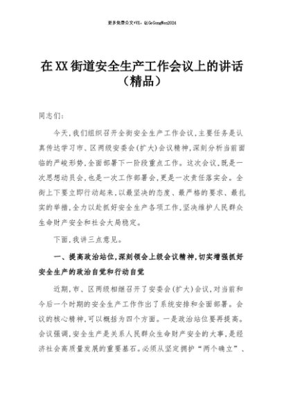 / 【七哥公文】2025年:在XX街道安全生产工作会议上的讲话(精品)+更多免费公文+VX:QiGeGongWen2024