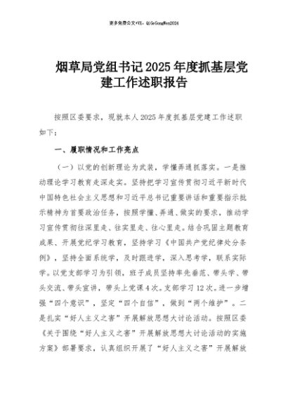 / 【七哥公文】2025年:烟草局党组书记2025年度抓基层党建工作述职报告+更多免费公文+VX:QiGeGongWen2024