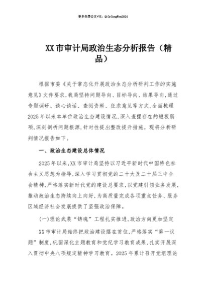 / 【七哥公文】2025年:XX市审计局政治生态分析报告(精品)+更多免费公文+VX:QiGeGongWen2024