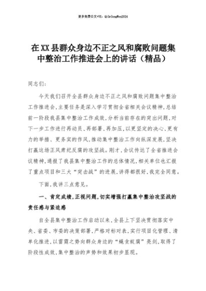 【七哥公文】2025年:在XX县群众身边不正之风和腐败问题集中整治工作推进会上的讲话(精品)+更多免费公文+VX:QiGeGongWen2024