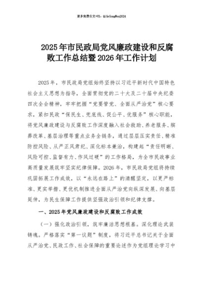 【七哥公文】2025年:2025年市民政局党风廉政建设和反腐败工作总结暨2026年工作计划+更多免费公文+VX:QiGeGongWen2024