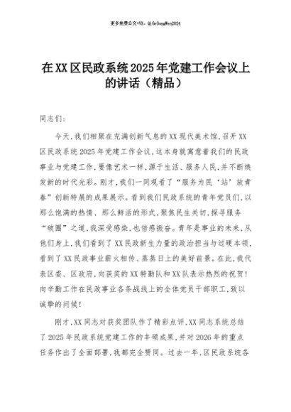 【七哥公文】2025年:在XX区民政系统2025年党建工作会议上的讲话(精品)+更多免费公文+VX:QiGeGongWen2024