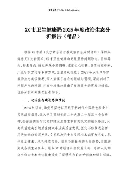 【七哥公文】2025年:XX市卫生健康局2025年度政治生态分析报告(精品)+更多免费公文+VX:QiGeGongWen2024