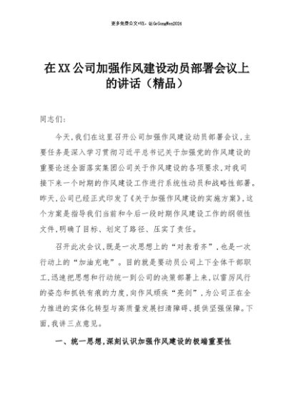 / 【七哥公文】2025年:在XX公司加强作风建设动员部署会议上的讲话(精品)+更多免费公文+VX:QiGeGongWen2024