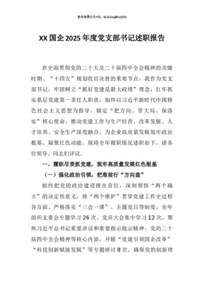 / 【七哥公文】2025年:XX国企2025年度党支部书记述职报告+更多免费公文+VX:QiGeGongWen2024