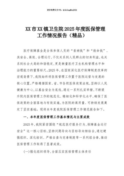 【七哥公文】2025年:XX市XX镇卫生院2025年度医保管理工作情况报告(精品)+更多免费公文+VX:QiGeGongWen2024