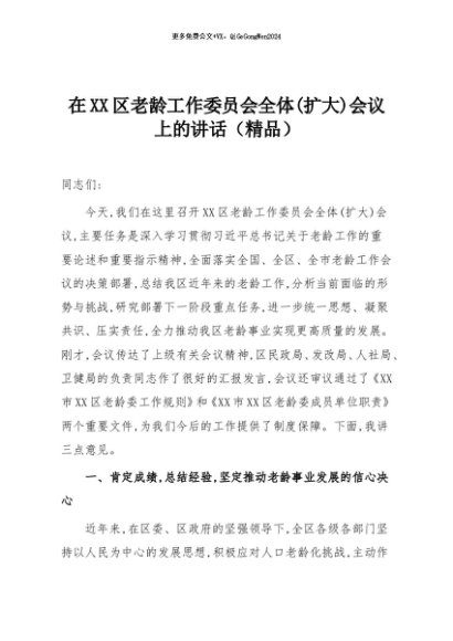 【七哥公文】2025年:在XX区老龄工作委员会全体(扩大)会议上的讲话(精品)+更多免费公文+VX:QiGeGongWen2024
