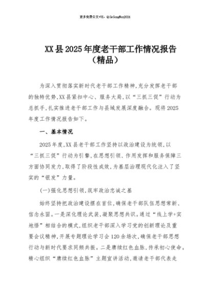 / 【七哥公文】2025年:XX县2025年度老干部工作情况报告(精品)+更多免费公文+VX:QiGeGongWen2024