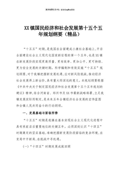 【七哥公文】2025年:XX镇国民经济和社会发展第十五个五年规划纲要(精品)+更多免费公文+VX:QiGeGongWen2024