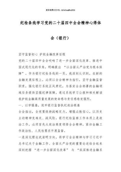 【七哥公文】2025年:纪检条线学习党的二十届四中全会精神心得体会(银行)_副本+更多免费公文+VX:QiGeGongWen2024