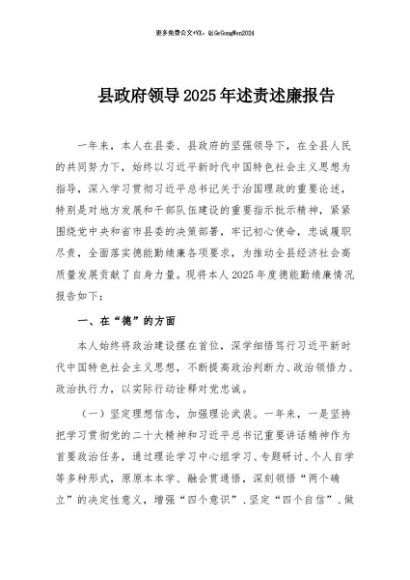 / 【七哥公文】2025年:县政府领导2025年述责述廉报告+更多免费公文+VX:QiGeGongWen2024