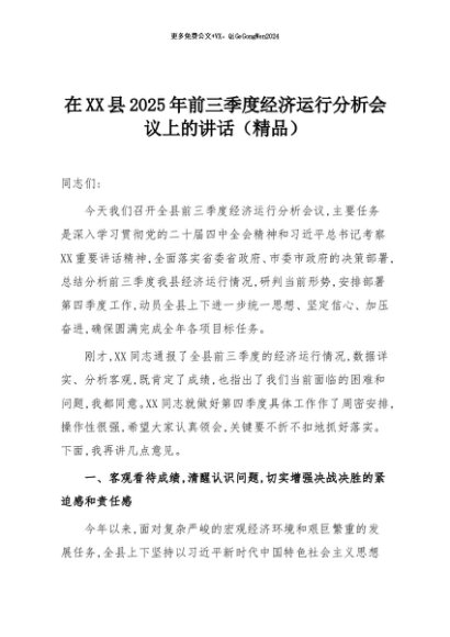 【七哥公文】2025年:在XX县2025年前三季度经济运行分析会议上的讲话(精品)+更多免费公文+VX:QiGeGongWen2024
