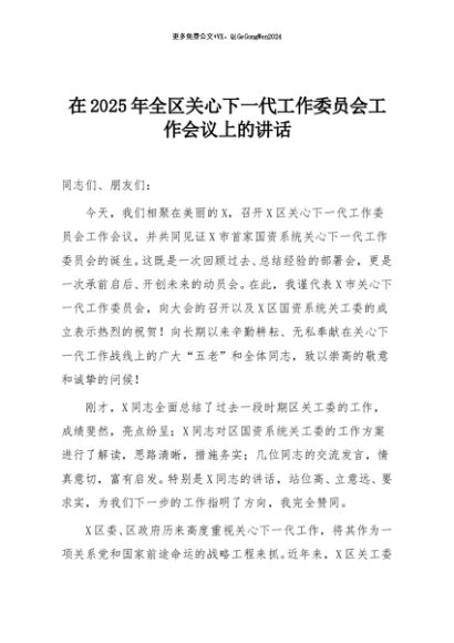 【七哥公文】2025年:在2025年全区关心下一代工作委员会工作会议上的讲话+更多免费公文+VX:QiGeGongWen2024