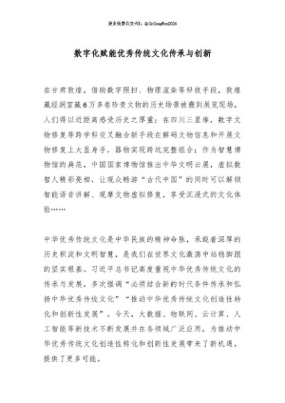 / 【七哥公文】2025年:数字化赋能优秀传统文化传承与创新_副本+更多免费公文+VX:QiGeGongWen2024