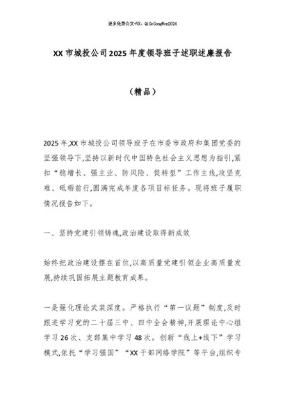 【七哥公文】2025年:XX市城投公司2025年度领导班子述职述廉报告(精品)_副本+更多免费公文+VX:QiGeGongWen2024