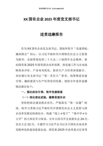 / 【七哥公文】2025年:XX国有企业2025年度党支部书记述责述廉报告+更多免费公文+VX:QiGeGongWen2024