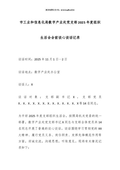 【七哥公文】2025年:市工业和信息化局数字产业处党支部2025年度组织生活会会前谈心谈话记录_副本+更多免费公文+VX:QiGeGongWen2024