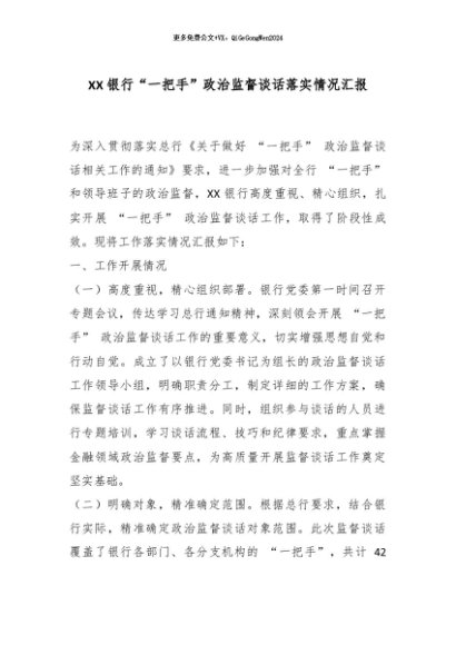 【七哥公文】2025年:XX银行“一把手”政治监督谈话落实情况汇报_副本+更多免费公文+VX:QiGeGongWen2024