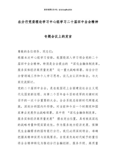 【七哥公文】2025年:在分行党委理论学习中心组学习二十届四中全会精神专题会议上的发言_副本+更多免费公文+VX:QiGeGongWen2024