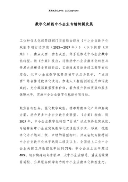 / 【七哥公文】2025年:数字化赋能中小企业专精特新发展_副本+更多免费公文+VX:QiGeGongWen2024